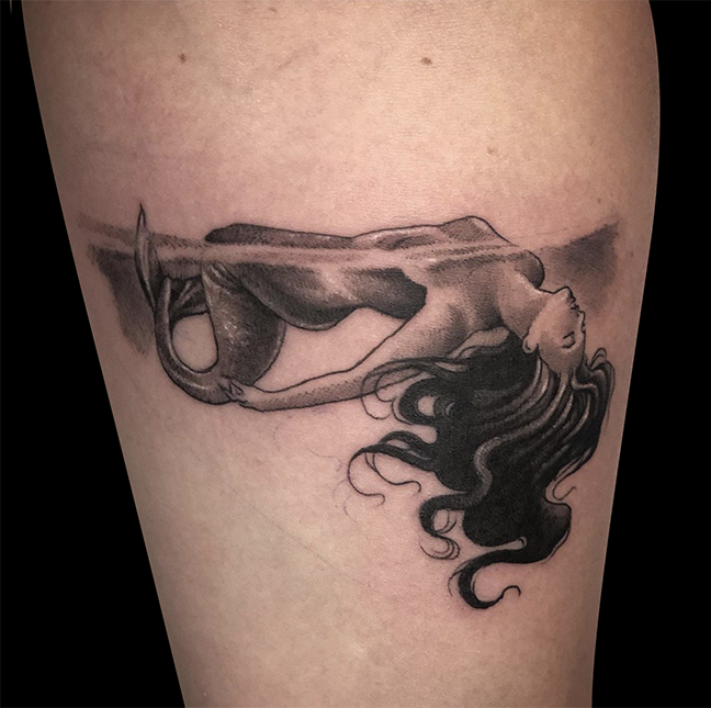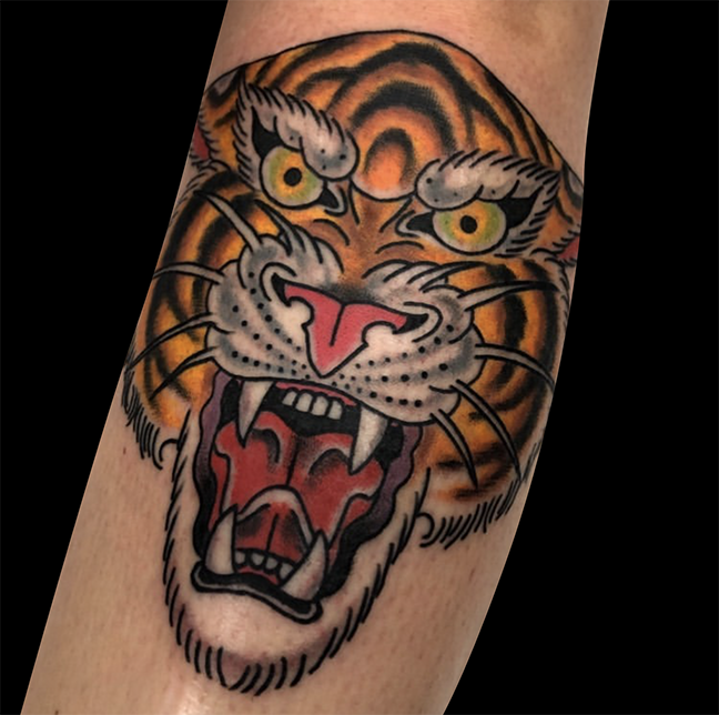 This week Dan put a tiger head on a client’s leg, Mike got to do a Killer Clowns From Outer Space tat, and Felix tattooed a shoulder floral bouquet.