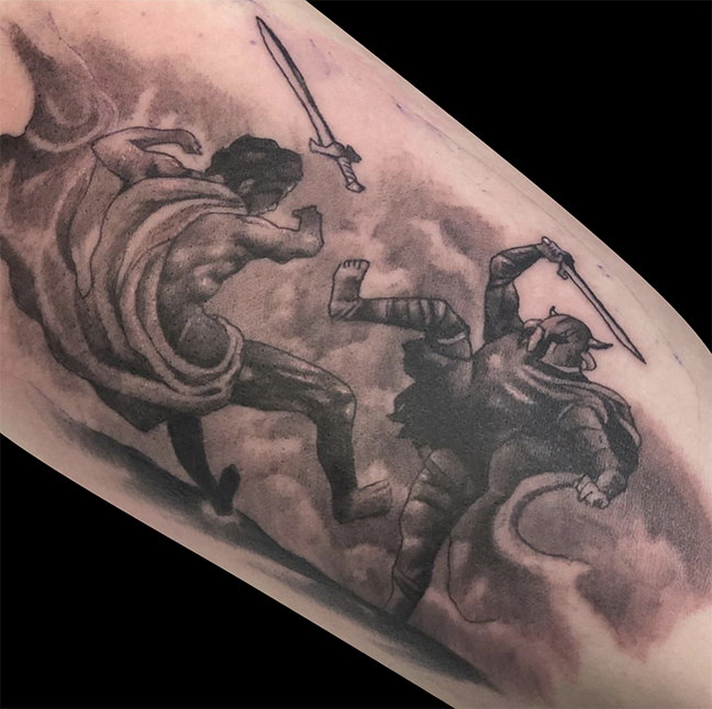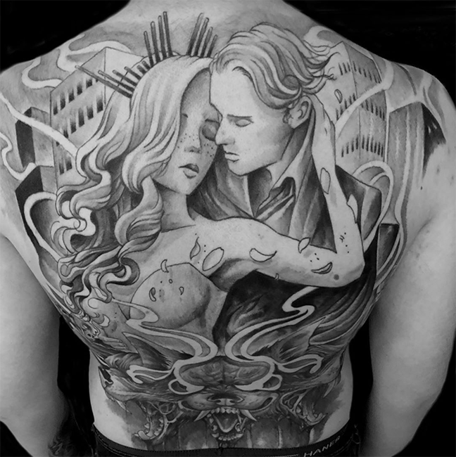 This week Mike finished a back piece and Dan did a wizard on a clients arm.