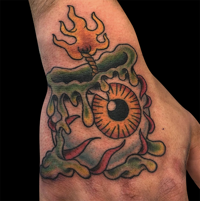 This week Dan tattooed an eyeball candle on a dude’s hand and Felix got to do a small rose on a girl’s chest.