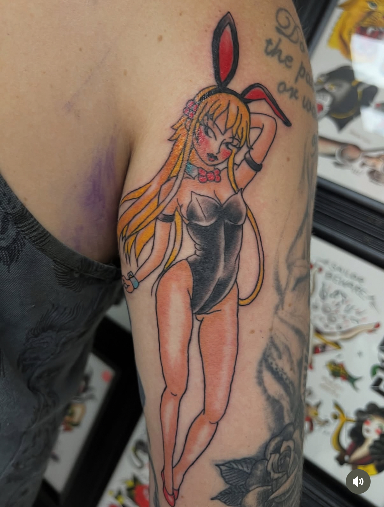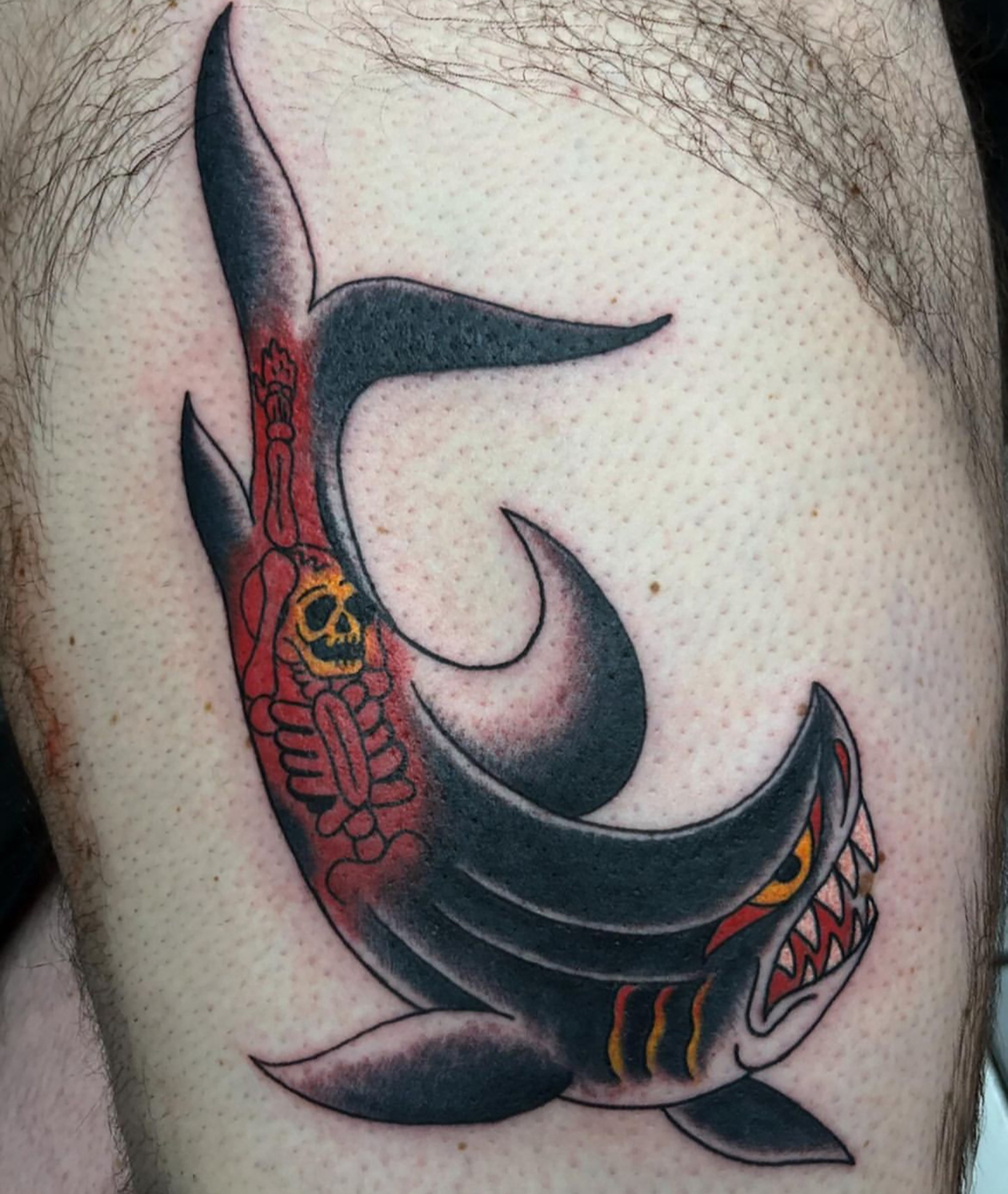 This week we got an anime girly by Cam and a throwback traditional shark by Dan. Come by the shop sometime and get a big eagle!