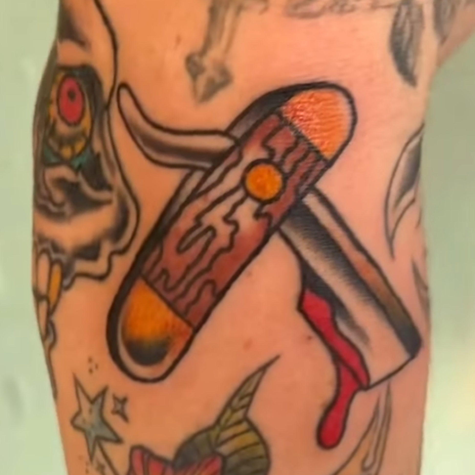 Here’s a new wild boar tat by Dan and an older eagle by Cam. Stop by anytime.