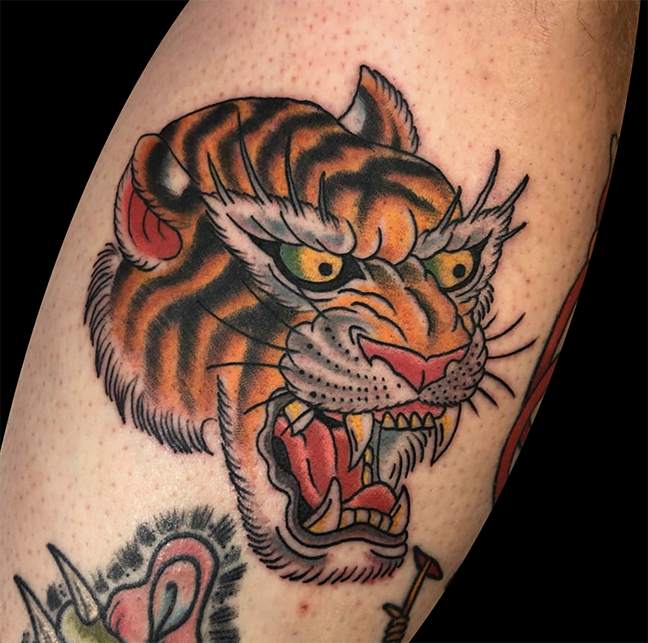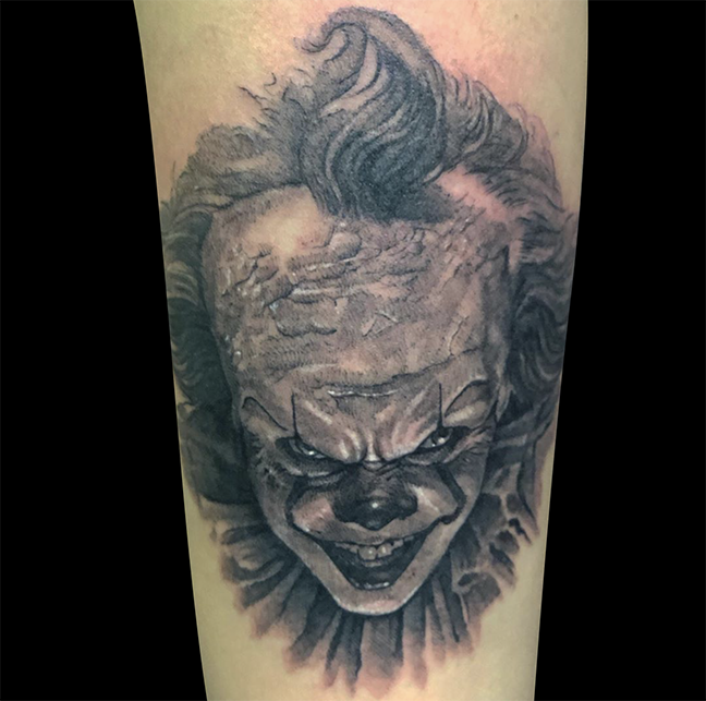 This week Mike did a Pennywise portrait and Dan tattooed a tiger head on the shop apprentice.