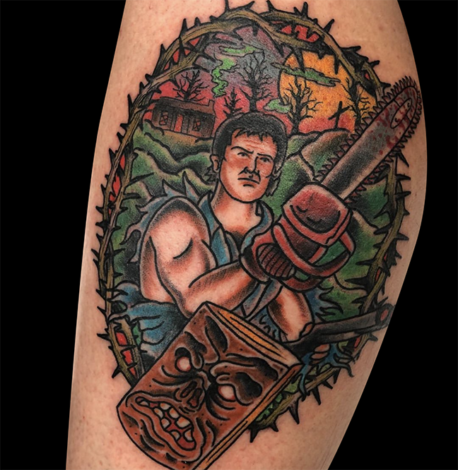 Dan got to do an Evil Dead tattoo this week. Felix tattooed some diamonds on a client’s ankle.