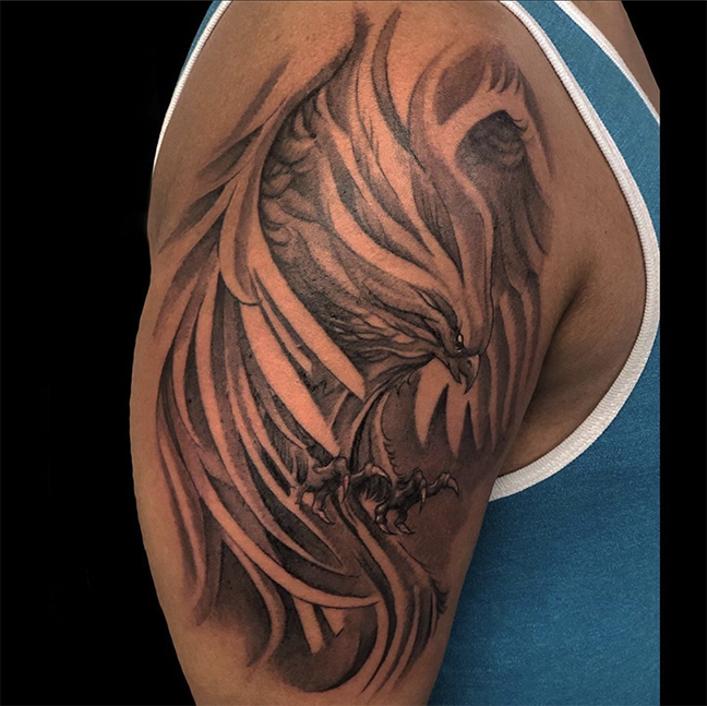 This week Mike finished a back piece and Dan did a wizard on a clients arm.