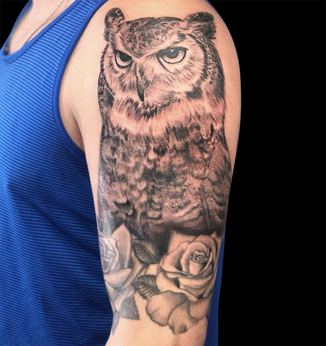 This week Dan put a tiger head on a client’s leg, Mike got to do a Killer Clowns From Outer Space tat, and Felix tattooed a shoulder floral bouquet.