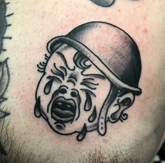 This week Mike put a black and grey smokey dice tat on a dudes hand. Dan got to do a traditional crybaby tattoo. Take a look.