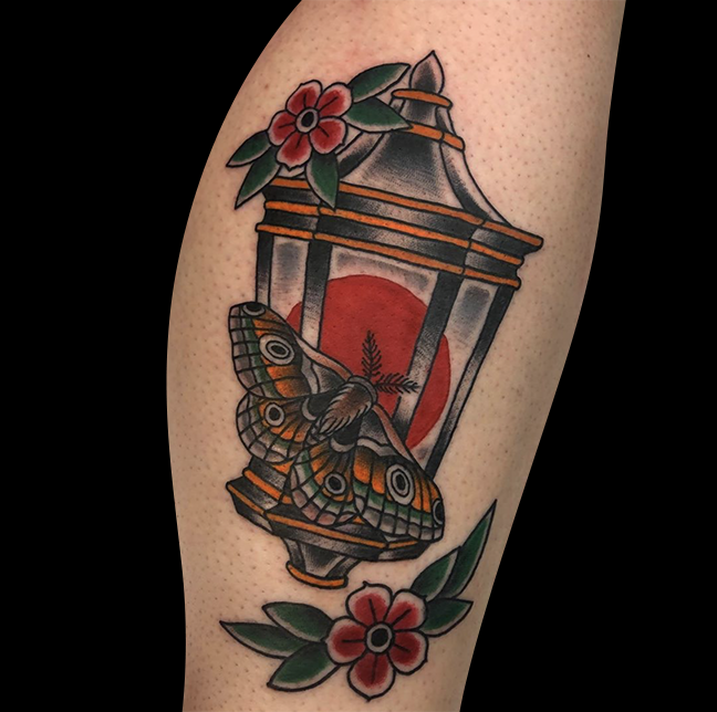 This week Dan tattooed a traditional moth and lantern on a clients leg and Mike did an occult wizard tat.