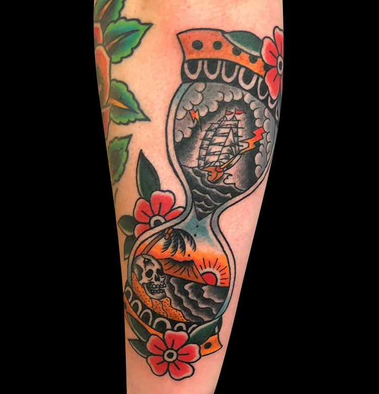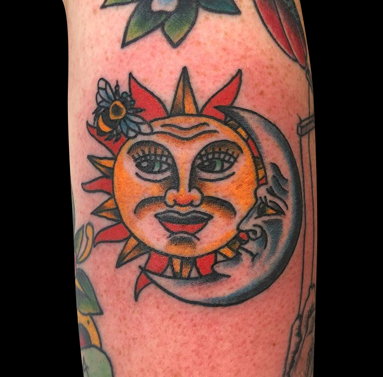 This week Mike made more progress on a leg sleeve and Dan got to do a traditional sun and moon.