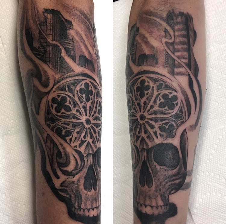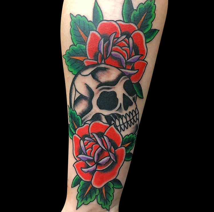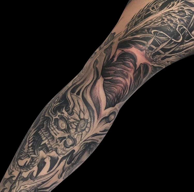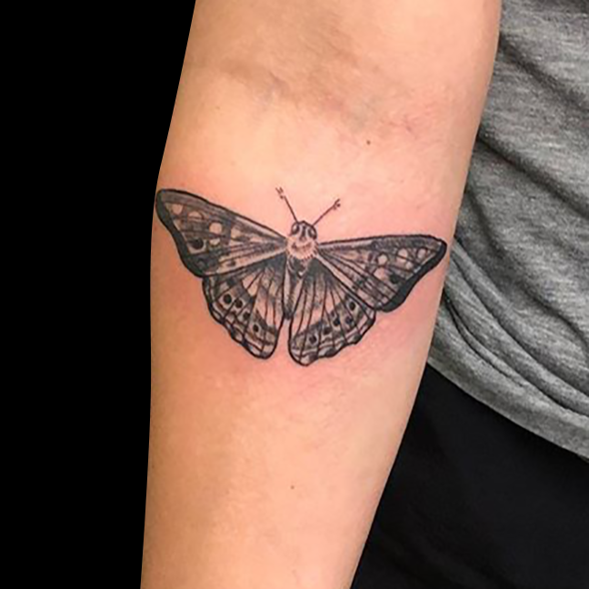 This week Mike worked on a horror sleeve, Felix put a black and grey moth on a client’s arm and Dan did a skull with roses.