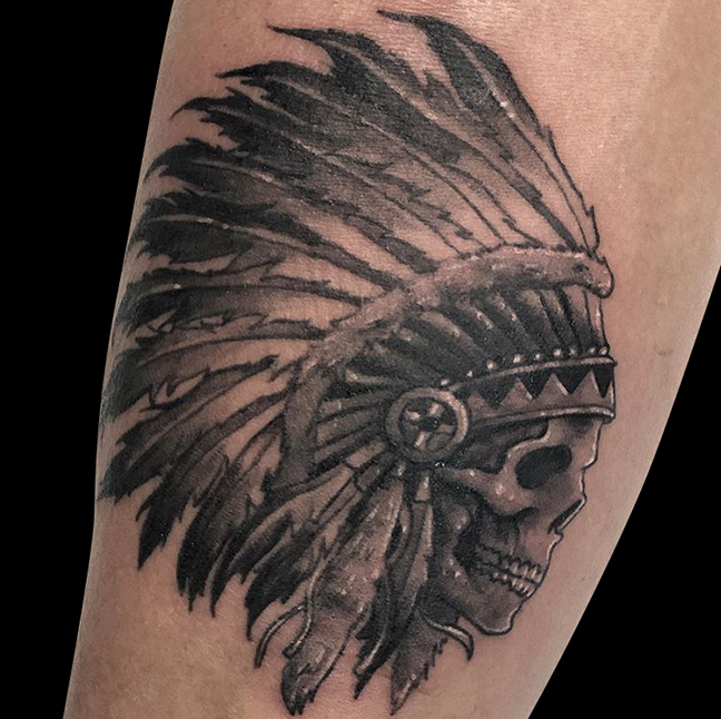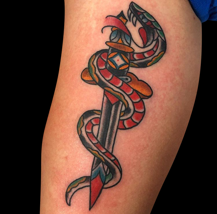 This week Dan did a traditional snake and dagger, Felix tattooed a hand holding a makeup brush on a girl’s arm and Mike worked on a native skull with head dress. Those and more below.