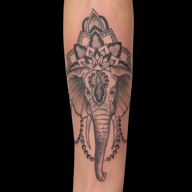 This week Dan tattooed a dancing frog on a client’s arm, Mike got to do an evil eye tat and Felix did an ornate elephant head. Check ’em out.