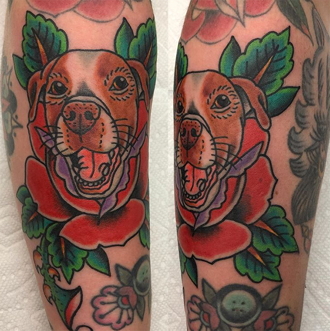 This week Mike worked on a black and grey skull and octopus tattoo. Dan got to do a traditional dog portrait. Those and more below.