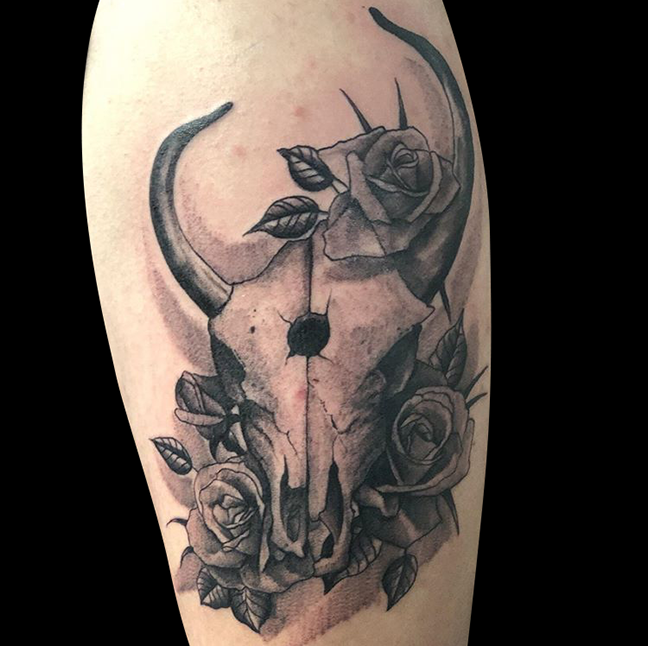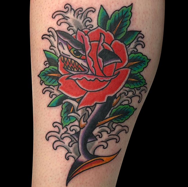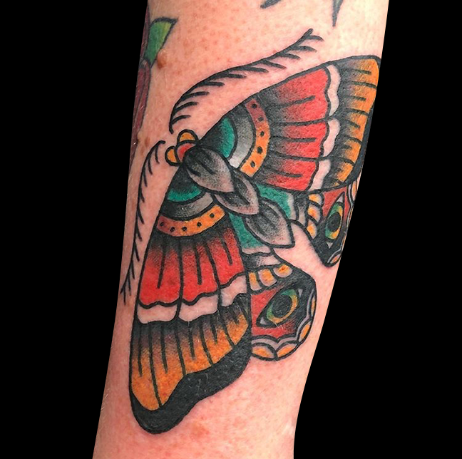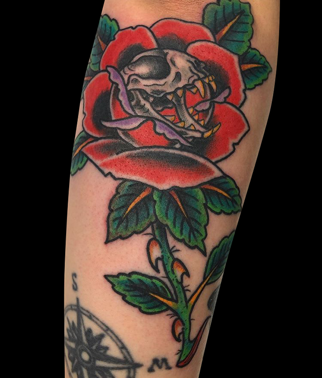 Dan got to do some fun traditional tats this week. Mike finished a skull half sleeve. Felix got to do a baby flower tat on her mom. Check ’em out!