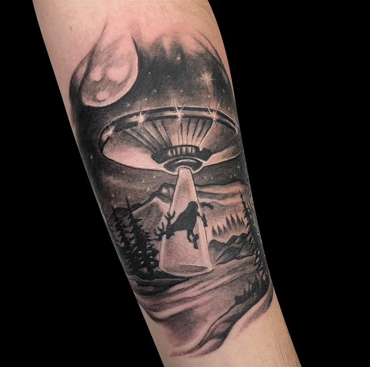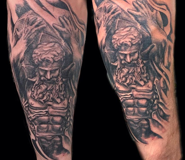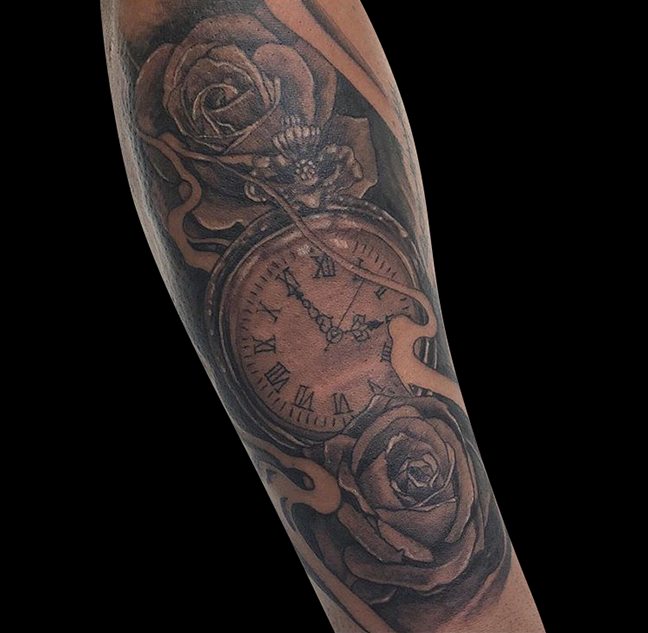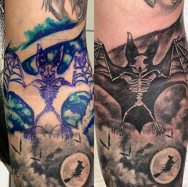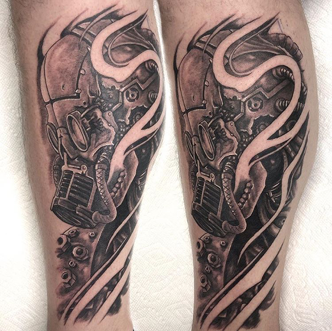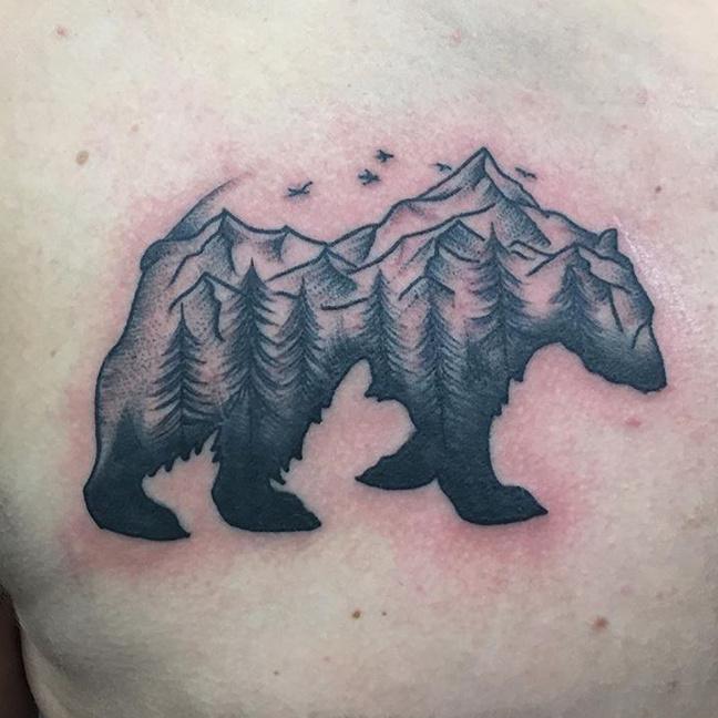 This week Mike go to do a black and grey gas mask tat, Dan did a bear silhouette/landscape, and Felix tattooed a cherub on a client’s arm. Take a look.