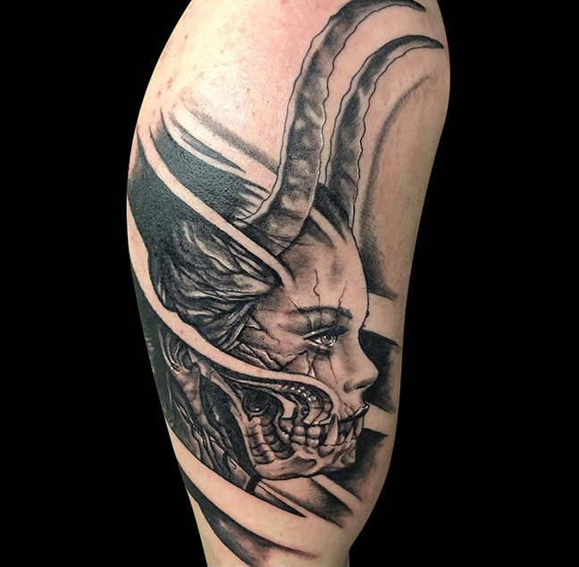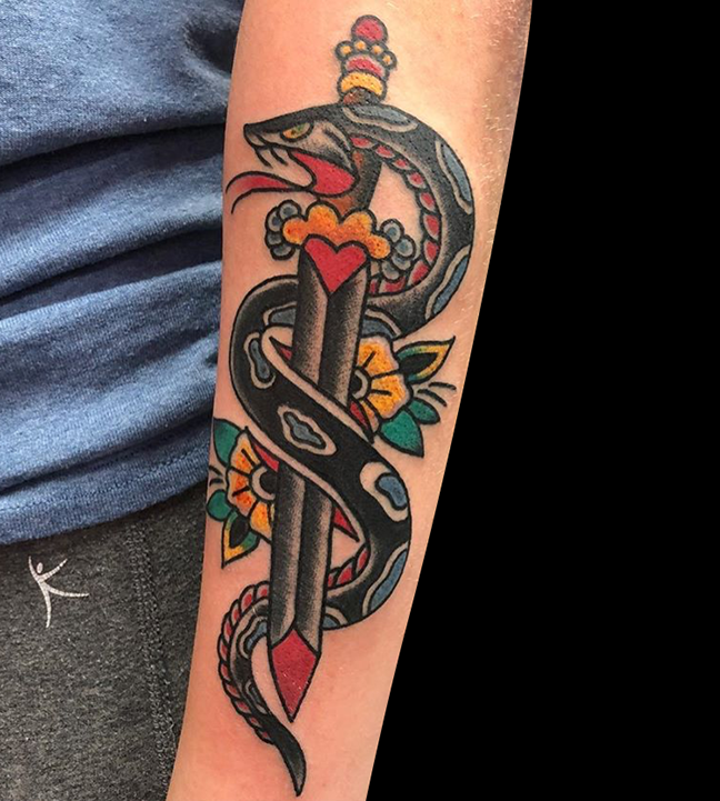This week Dan got to do some snake and dagger flash he painted on a walk in and Mike put a huge demon girl on a dude’s arm. Those and more below.