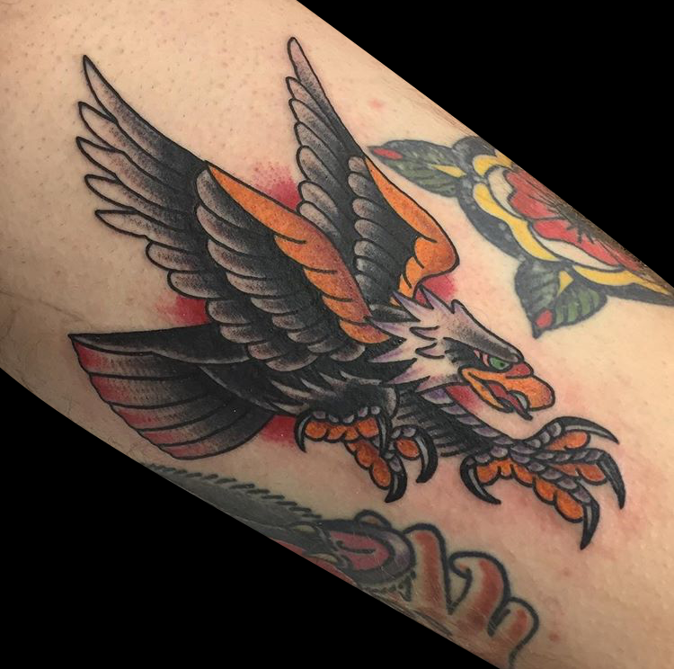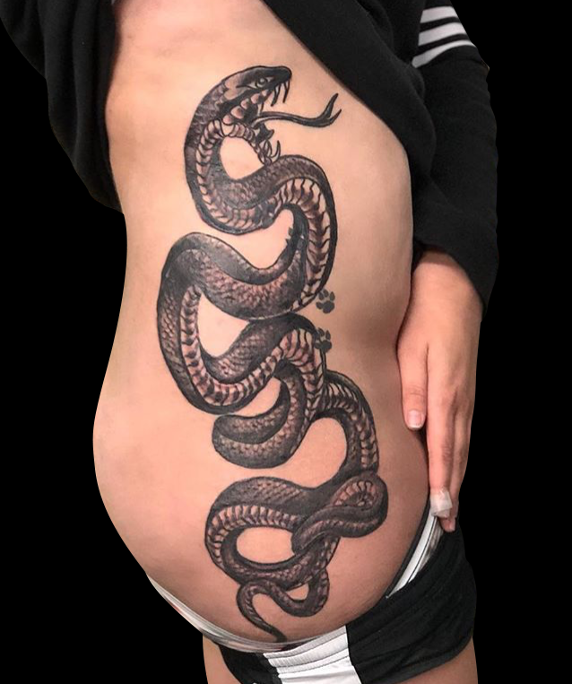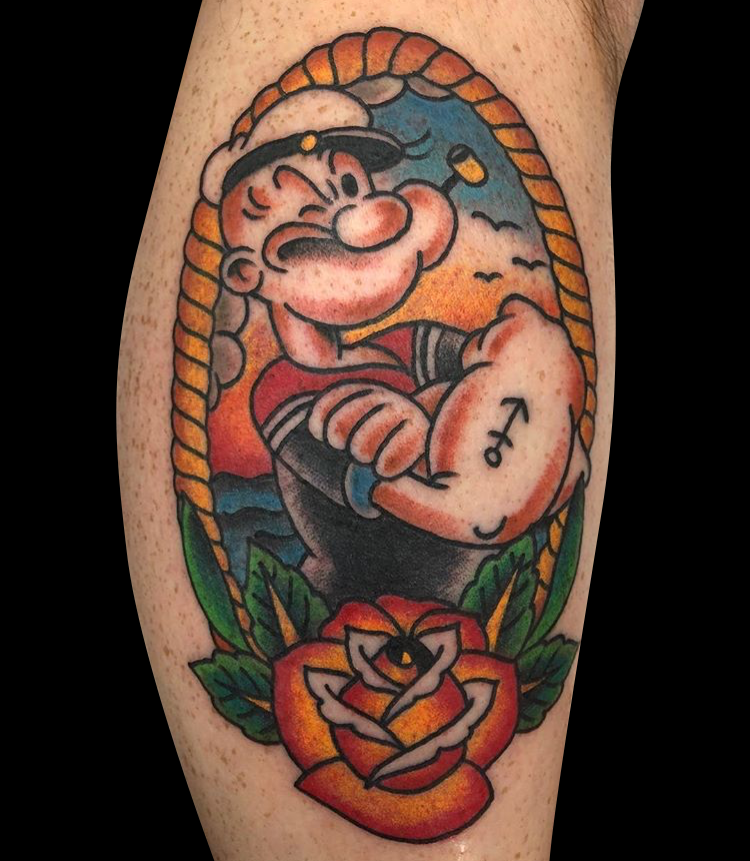 This week Felix did a huge snake on a client’s side, Dan tattooed a traditional Popeye on an arm and Mike got to finish a headless horseman tat. Those and more below.