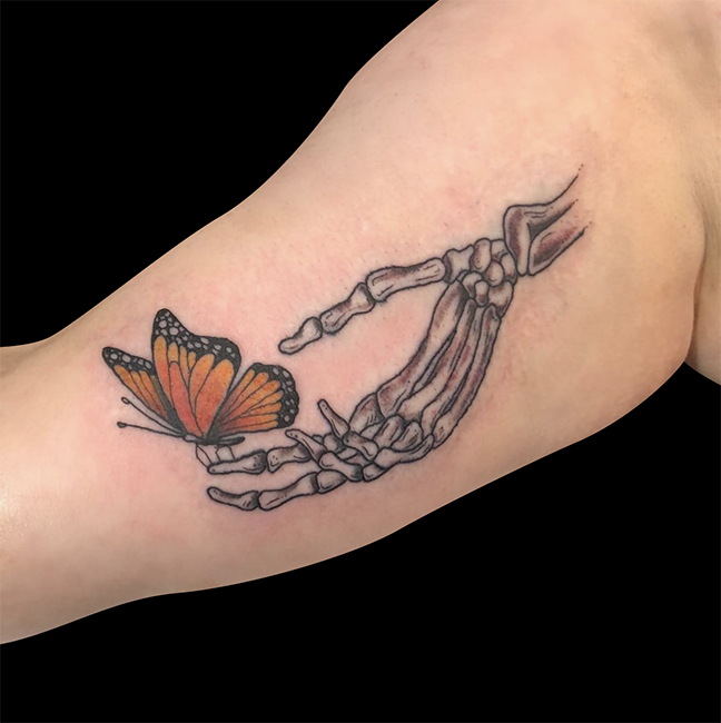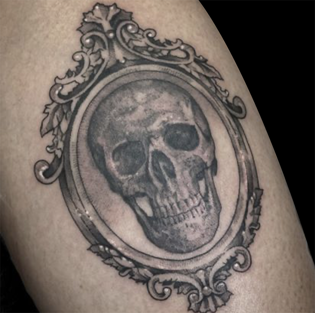 This week Mike tattooed a skull in an ornate frame on one of his clients. We’re accepting walk-ins on Mondays for our new artist Kansas City Jake. Stop by and get you one!
