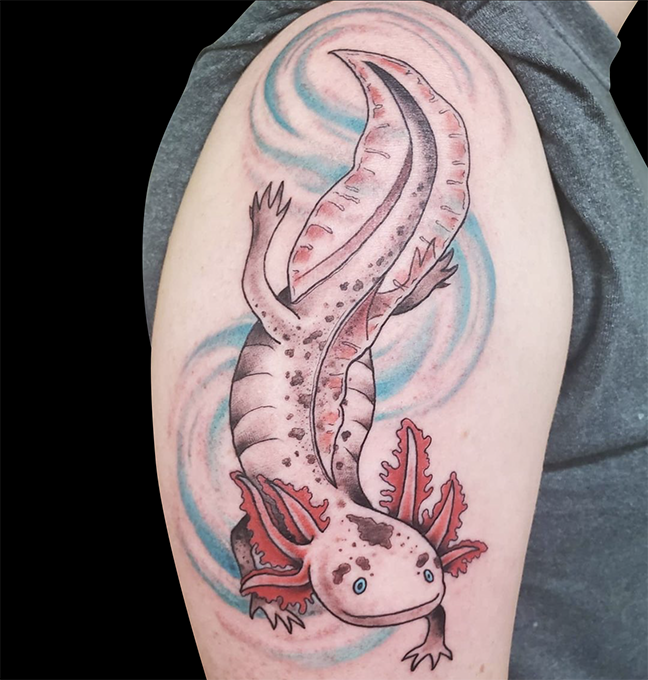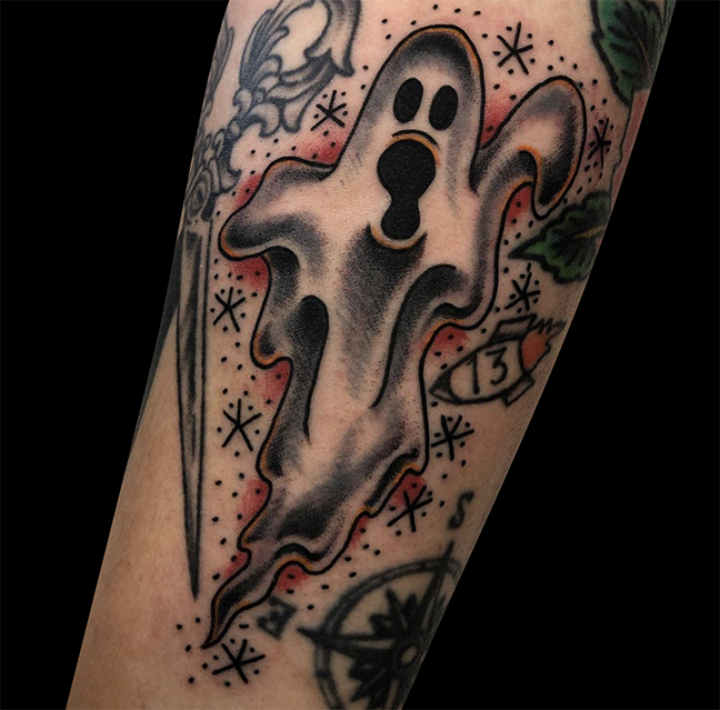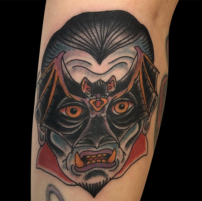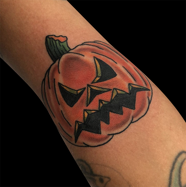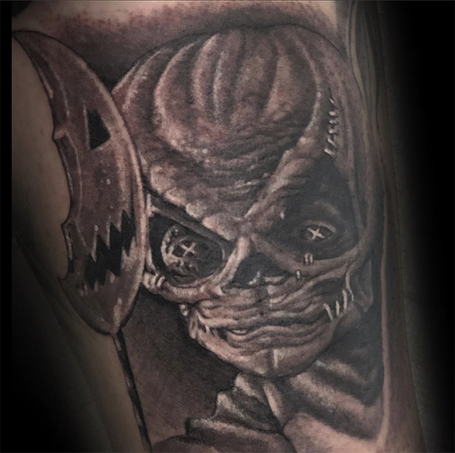Mike got to do a tattoo of Sam from Trick ‘r Treat this week. Jen did an axolotl tat. Dan kept it going with more traditional halloween tattoos. Felix tattooed some lavender behind a client’s ear.