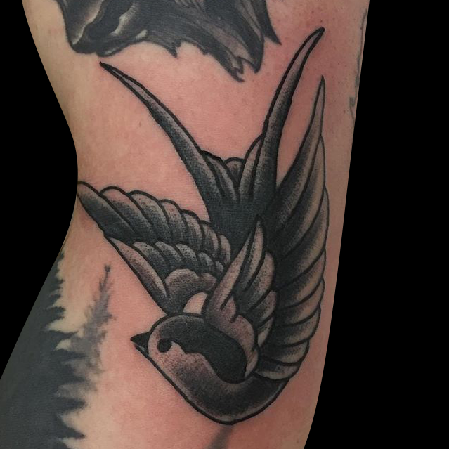 This week Dan did a black and grey sparrow on one of his regulars and Mike did a big clipper ship. Also got a pic of a cool one Felix did awhile back.